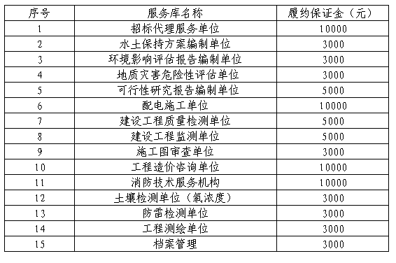 南平綠發(fā)集團(tuán)有限公司因經(jīng)營需要,擬成立服務(wù)庫,現(xiàn)實(shí)施2023年服務(wù)庫招錄,本次招錄合作期三年,要求如下: 一、本次招錄類別及資格條件 本次共招錄15個(gè)類別服務(wù)庫,綠發(fā)集團(tuán)及下屬公司在今后的工作中,在不違反有關(guān)法律、法規(guī)規(guī)定的前提下,結(jié)合集團(tuán)服務(wù)庫管理辦法,從服務(wù)庫中選擇具體的服務(wù)單位。滿足資格的南平市市屬國企單位可直接入庫,入庫的南平市市屬國企單位家數(shù)包含在對(duì)應(yīng)服務(wù)庫家數(shù)內(nèi)。若入圍家數(shù)少于3家不能形成有效竟?fàn)幍?,集團(tuán)公司將從庫外另行再邀請(qǐng)相應(yīng)服務(wù)單位參與比選。本次具體類別及資格條件要求如下: 1. 招標(biāo)代理服務(wù)單位(10家) 具備提供工程招標(biāo)代理服務(wù)的企業(yè)法人單位。且根據(jù)《閩建筑函[2018]26號(hào)》的規(guī)定投錄人應(yīng)當(dāng)取得公司法人《營業(yè)執(zhí)照》(登記營業(yè)范圍須包含工程招標(biāo)代理業(yè)務(wù))且完成并通過福建省住房和城鄉(xiāng)建設(shè)政務(wù)服務(wù)系統(tǒng)登記企業(yè)基本信息。(提供營業(yè)執(zhí)照復(fù)印件加蓋公章、福建省住房和城鄉(xiāng)建設(shè)政務(wù)服務(wù)系統(tǒng)登記證明材料加蓋公章) 2. 水土保持方案編制單位(5家) 具備建設(shè)項(xiàng)目水土保持方案編制水平評(píng)價(jià)證書 1星及以上資質(zhì)。(提供營業(yè)執(zhí)照和資質(zhì)證書復(fù)印件加蓋公章) 3. 環(huán)境影響評(píng)估報(bào)告編制單位(5家) 具備環(huán)境影響評(píng)估報(bào)告編制能力,且在環(huán)境影響評(píng)價(jià)信用平臺(tái)登記的單位。同時(shí)不得被列入《建設(shè)項(xiàng)目環(huán)境影響報(bào)告書(表)編制監(jiān)督管理辦法》規(guī)定的限期整改名單、環(huán)境影響評(píng)價(jià)失信“黑名單”。(提供環(huán)境影響評(píng)價(jià)信用平臺(tái)登記證明材料加蓋公章、未被列入限期整改名單和環(huán)境影響評(píng)價(jià)失信“黑名單的證明材料) 4. 地質(zhì)災(zāi)害危險(xiǎn)性評(píng)估單位(5家) 具備自然資源主管部門頒發(fā)的乙級(jí)及以上地質(zhì)災(zāi)害危險(xiǎn)性評(píng)估單位資質(zhì)。(提供營業(yè)執(zhí)照和資質(zhì)證書復(fù)印件加蓋公章) 5. 可行性研究報(bào)告編制單位(6家) 具備可行性研究報(bào)告編制能力,且應(yīng)是通過全國投資項(xiàng)目在線審批監(jiān)管平臺(tái)備案的工程咨詢單位(建筑工程、市政公用工程)專業(yè)。(提供通過全國投資項(xiàng)目在線審批監(jiān)管平臺(tái)備案相關(guān)信息截圖、營業(yè)執(zhí)照復(fù)印件、資質(zhì)證書復(fù)印件加蓋公章) 6. 配電施工單位(5家) 具備建設(shè)行政主管部門頒發(fā)的電力工程施工總承包或送變電工程專業(yè)承包三級(jí)及以上資質(zhì),并已通過南平電業(yè)局入網(wǎng)審查。(提供資質(zhì)證書復(fù)印件、通過南平電業(yè)局入網(wǎng)審查證明材料加蓋公章) 7. 建設(shè)工程質(zhì)量檢測單位(6家) 具備建設(shè)行政主管部門頒發(fā)的建設(shè)工程質(zhì)量檢測資質(zhì)。(提供營業(yè)執(zhí)照復(fù)印件和資質(zhì)證書復(fù)印件加蓋公章) 8. 建設(shè)工程監(jiān)測單位(6家) 具備建設(shè)行政主管部門核發(fā)的合格有效的工程勘察專業(yè)類(巖土工程物探測試檢測監(jiān)測)乙級(jí)及以上資質(zhì)或工程勘察綜合甲級(jí)資質(zhì)。(提供營業(yè)執(zhí)照復(fù)印件和資質(zhì)證書復(fù)印件加蓋公章) 9. 施工圖審查單位(5家) 具備建設(shè)行政主管部門頒發(fā)的二類及以上施工圖審查資質(zhì)證書。(提供營業(yè)執(zhí)照復(fù)印件和資質(zhì)證書復(fù)印件加蓋公章) 10.工程造價(jià)咨詢單位(6家) 具備提供工程造價(jià)咨詢服務(wù)的企業(yè)法人單位。且根據(jù)《閩建筑函[2021]60號(hào)》的規(guī)定投錄人應(yīng)當(dāng)取得具有工程造價(jià)咨詢經(jīng)營范圍的營業(yè)執(zhí)照且完成并通過福建省住房和城鄉(xiāng)建設(shè)政務(wù)服務(wù)系統(tǒng)登記企業(yè)基本信息。(提供營業(yè)執(zhí)照復(fù)印件、福建省住房和城鄉(xiāng)建設(shè)政務(wù)服務(wù)系統(tǒng)截圖加蓋公章) 11.消防技術(shù)服務(wù)機(jī)構(gòu)(6家) 符合《應(yīng)急管理部關(guān)于印發(fā)〈消防技術(shù)服務(wù)機(jī)構(gòu)從業(yè)條件〉的通知》的消防技術(shù)服務(wù)機(jī)構(gòu)(建筑消防設(shè)施維護(hù)保養(yǎng)檢測)。(提供營業(yè)執(zhí)照復(fù)印件、福建省消防技術(shù)服務(wù)信息平臺(tái)的截圖證明等相關(guān)證明材料加蓋公章) 12.土壤檢測單位(氡濃度)(5家) 具備市場監(jiān)督管理部門頒發(fā)的具有CMA標(biāo)志的資質(zhì)認(rèn)定證書。(提供營業(yè)執(zhí)照復(fù)印件和資質(zhì)證書復(fù)印件加蓋公章) 13.防雷檢測單位(6家) 具備氣象主管機(jī)構(gòu)頒發(fā)的雷電防護(hù)裝置檢測資質(zhì)。(提供營業(yè)執(zhí)照復(fù)印件和資質(zhì)證書復(fù)印件加蓋公章) 14.工程測繪單位(6家) 具備行業(yè)主管部門頒發(fā)的工程測繪資質(zhì)。(提供營業(yè)執(zhí)照復(fù)印件和資質(zhì)證書復(fù)印件加蓋公章) 15.檔案管理(5家) 具備